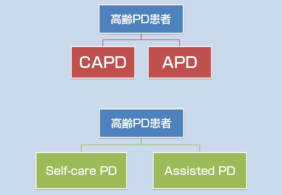 自己管理が難しい患者さんへの対応としては、医療者や家族の介助によってPD管理を行う「Assisted PD(アシストPD)」がある。これは認知症、寝たきりのほか、バッグを持ち上げる筋力がない、手先を器用に動かせなくなった、視力が低下したなど様々な理由でPDの自己管理が困難な患者に対して行われている。